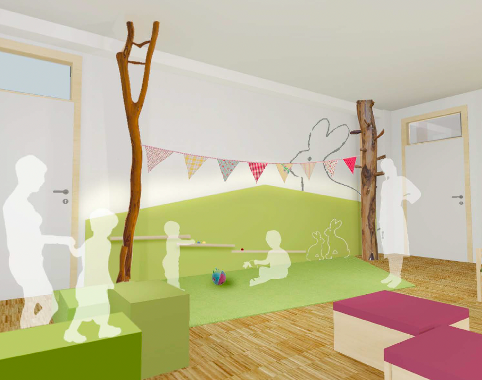 Geborgenheit & Stimulation, Erfahrungen ermöglichen und Zugehörigkeit empfinden: Räume beeinflussen bewusst und unbewusst die Entwicklung von Kindern und das Wohlbefinden von Mitarbeitenden. Der Aufgabe, die sich daraus ergibt, stellen wir uns gerne.